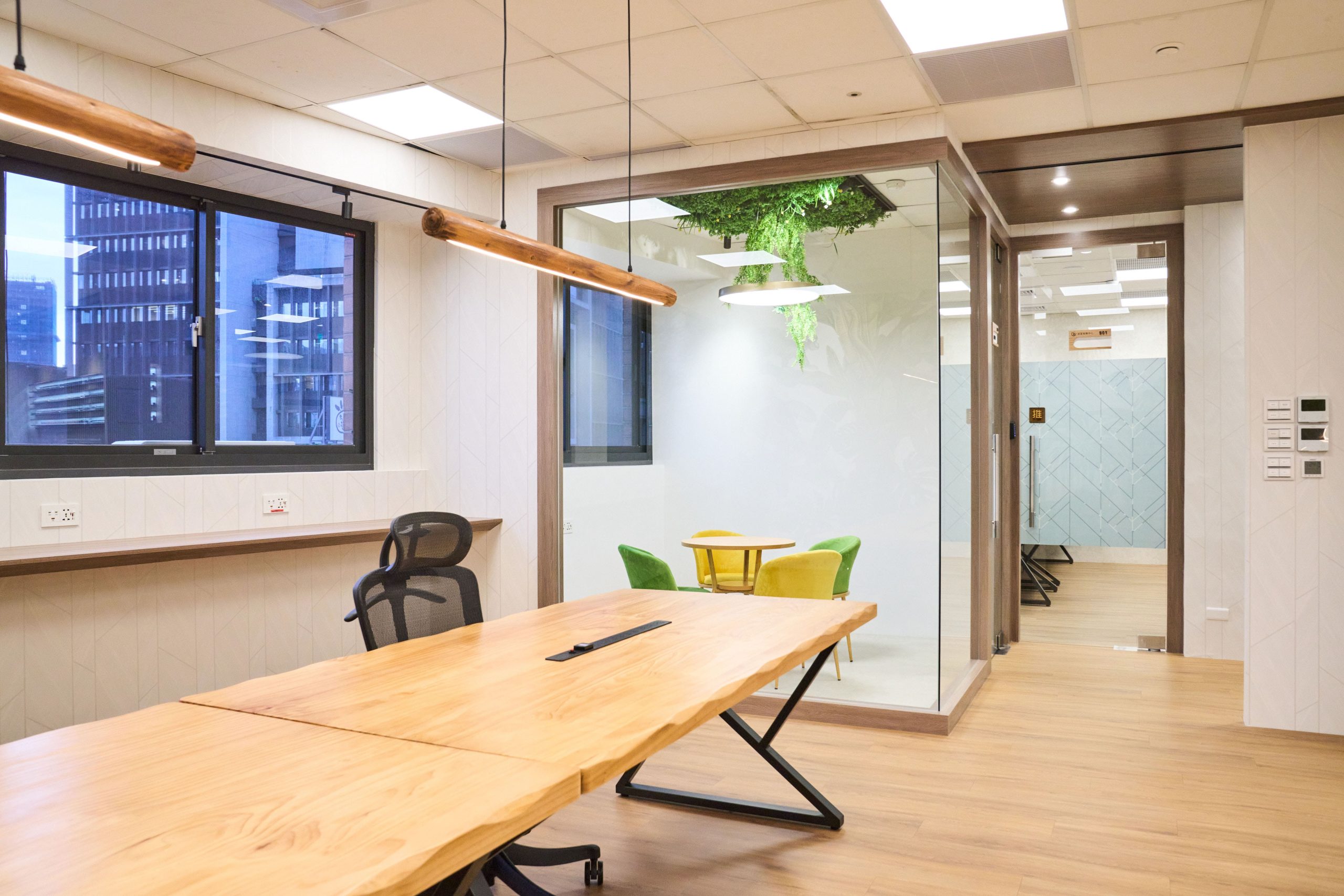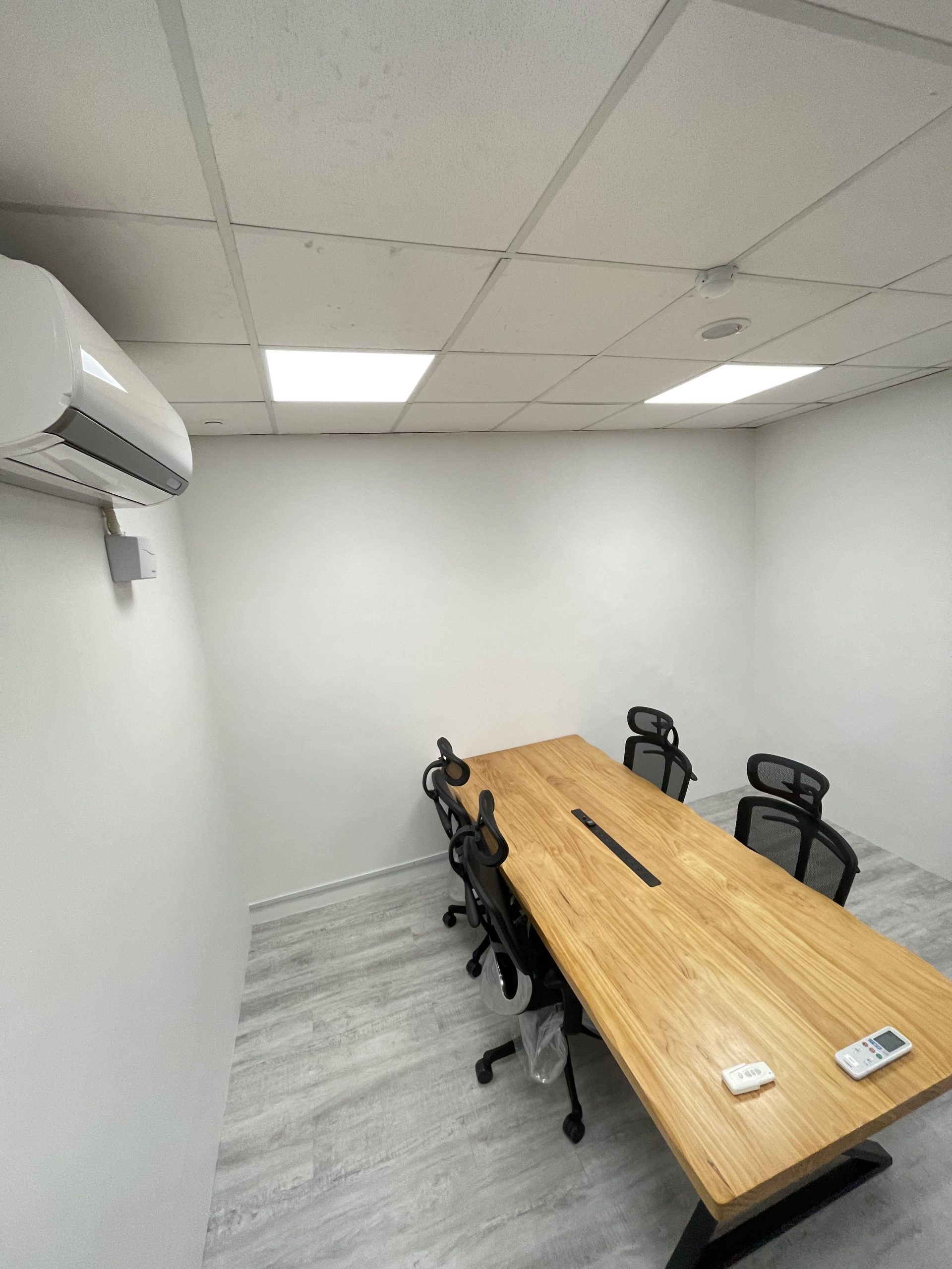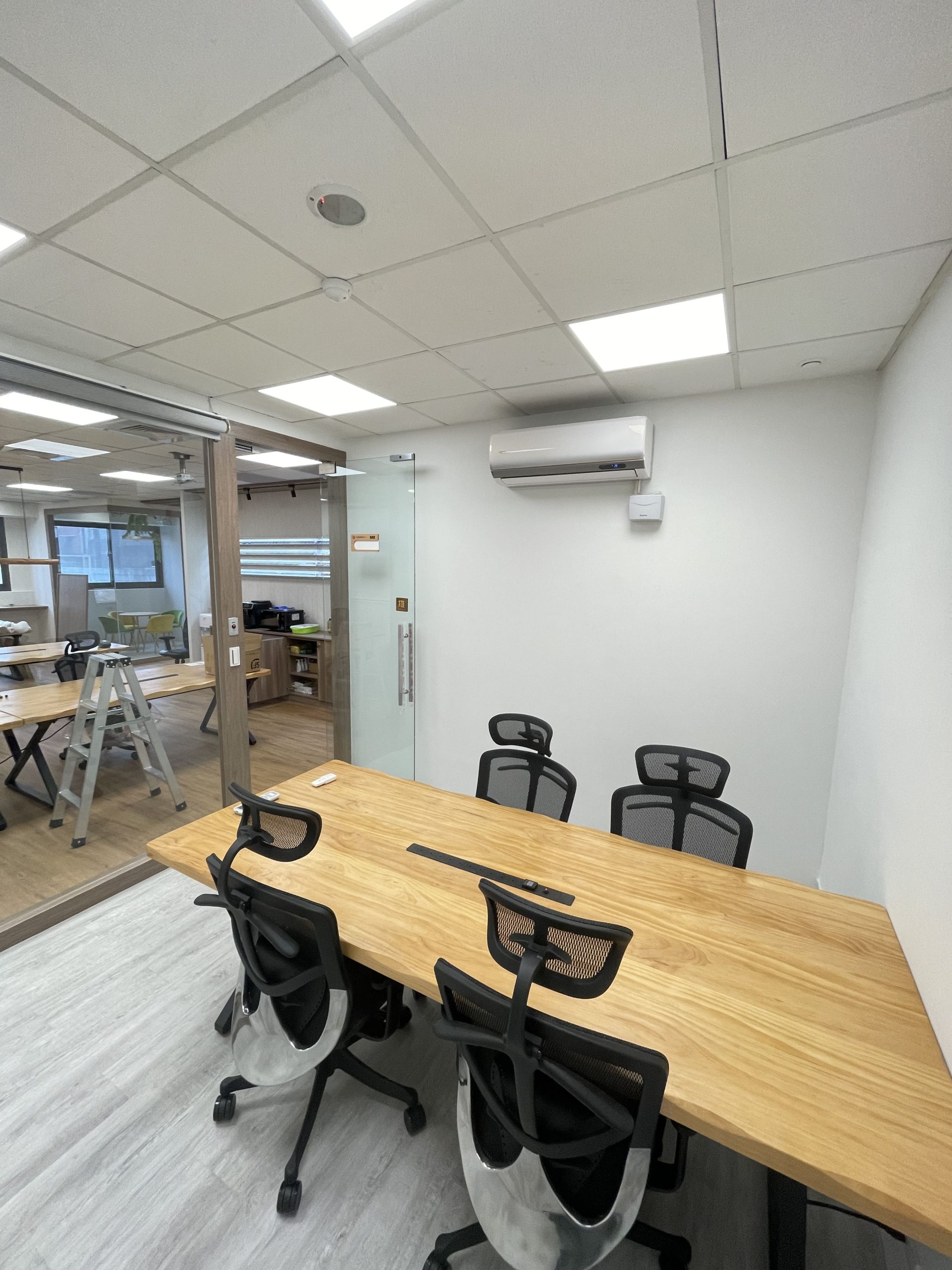 501號辦公室擁有整層中最大的辦公空間,設計寬敞明亮,配有獨立空調與大面外窗,讓自然光充盈整個室內,是小型團隊理想的工作環境。辦公室內配置六張人體工學座椅,提供長時間工作的舒適支撐。