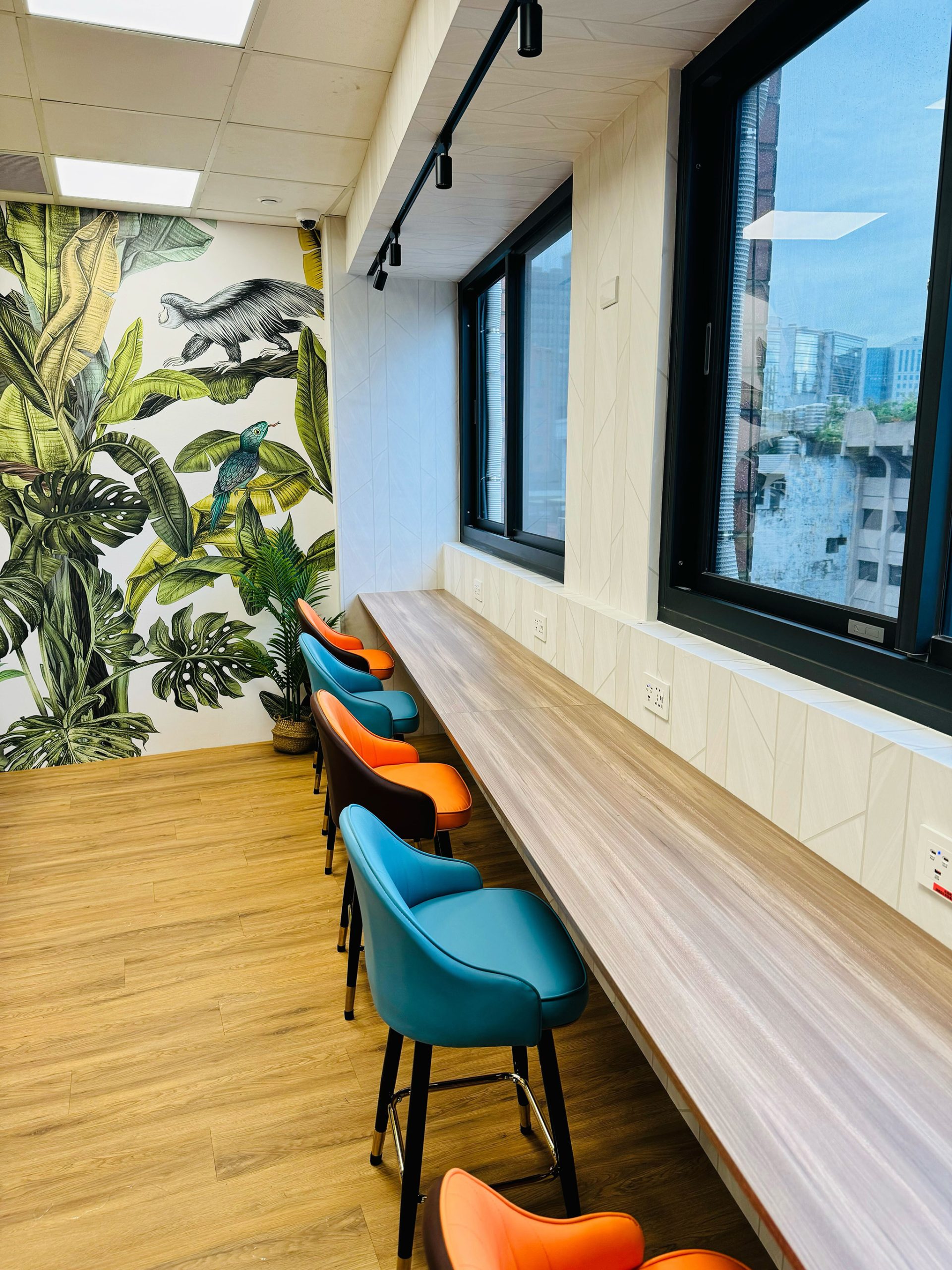 我們還設有吧台座位區,讓您可以一邊小酌,一邊欣賞窗外的城市街景與遼闊天空。整個空間共提供20個座位,每席每月租金3,500元,搭配公司登記優惠每席4,500元/月,再免費贈送一個小招牌位,為您打造舒適自在的工作與休憩場所。