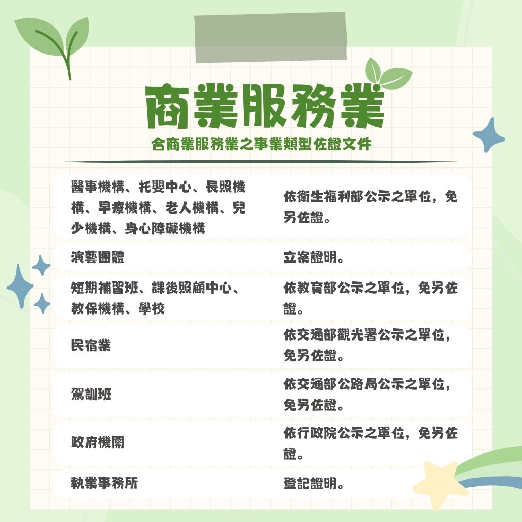 - 提案企業應為實際從事商業服務業,且有實體營業場所或電商平台營業的業者